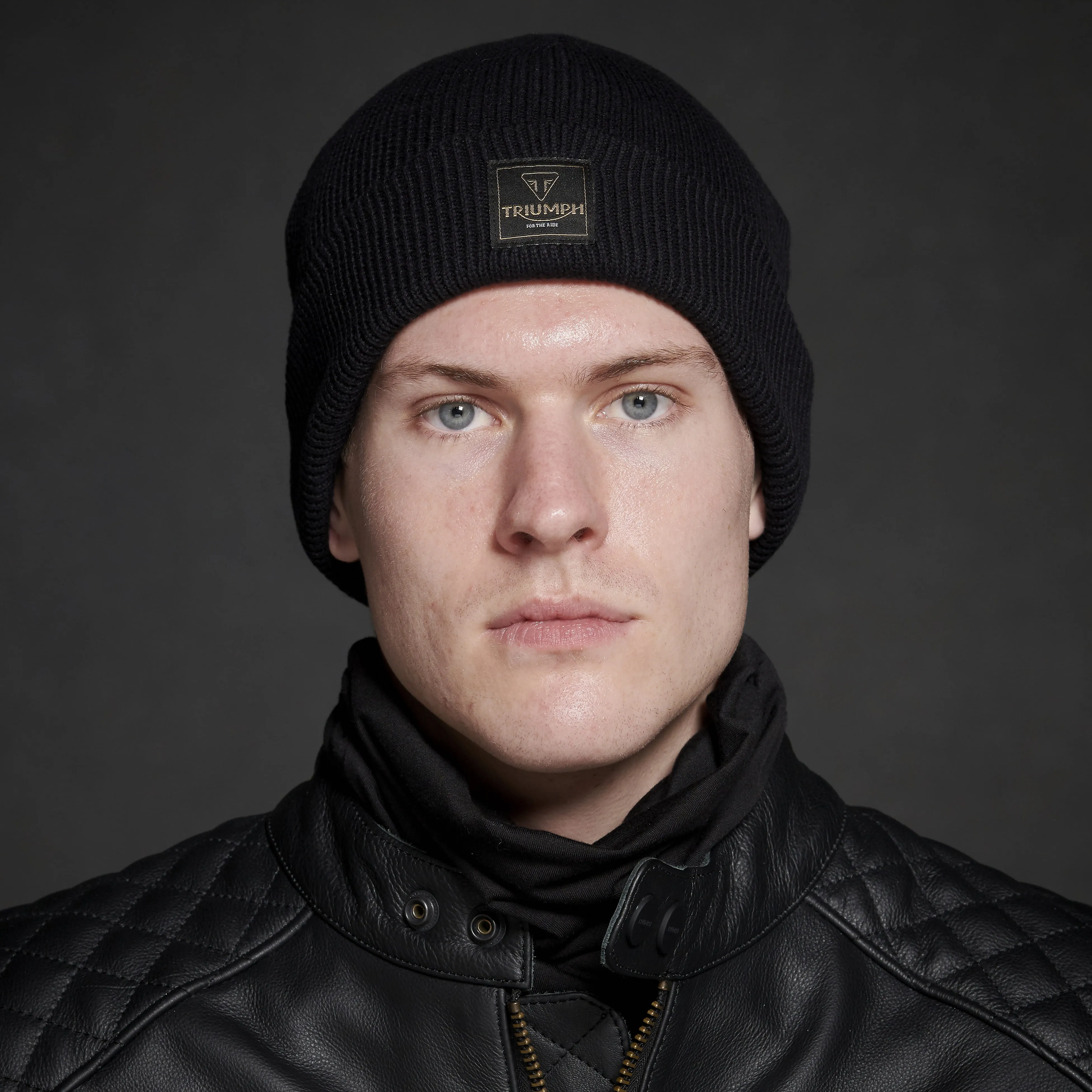 Keep your head extra warm this winter with the Polar Knitted Beanie. A soft blend of double knit cotton and acrylic ensures both comfort and warmth when you need it. The classic, low-profile design features a 1x1 knitted rib construction, fold over cuff and is finished with a high definition Triumph logo woven badge on the front.